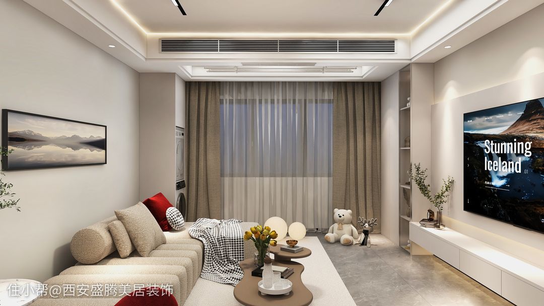 邊框線條:簡(jiǎn)潔的乳膠漆做基礎(chǔ),根擾電視墻的比例造型,裝上邊框線條,保持簡(jiǎn)約大方的基礎(chǔ),還能增加電視墻的層次美與對(duì)稱設(shè)計(jì)感,這也是一種簡(jiǎn)約大方的設(shè)計(jì)方案。